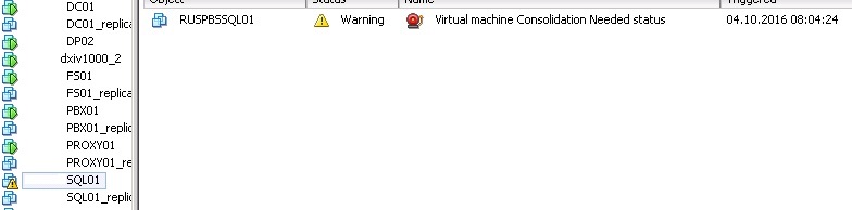virtual machine disks consolidation is needed. warning